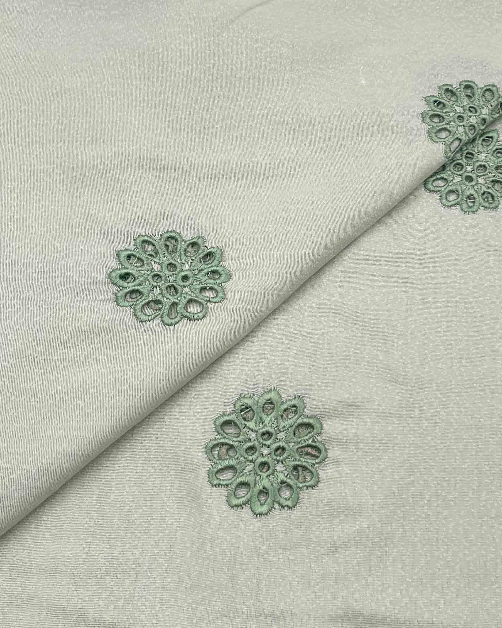 Elegant Silk Karandi fabric enriched with intricate embroidery. Soft, graceful, and versatile ideal for festive wear, luxury suits, and formal occasions.