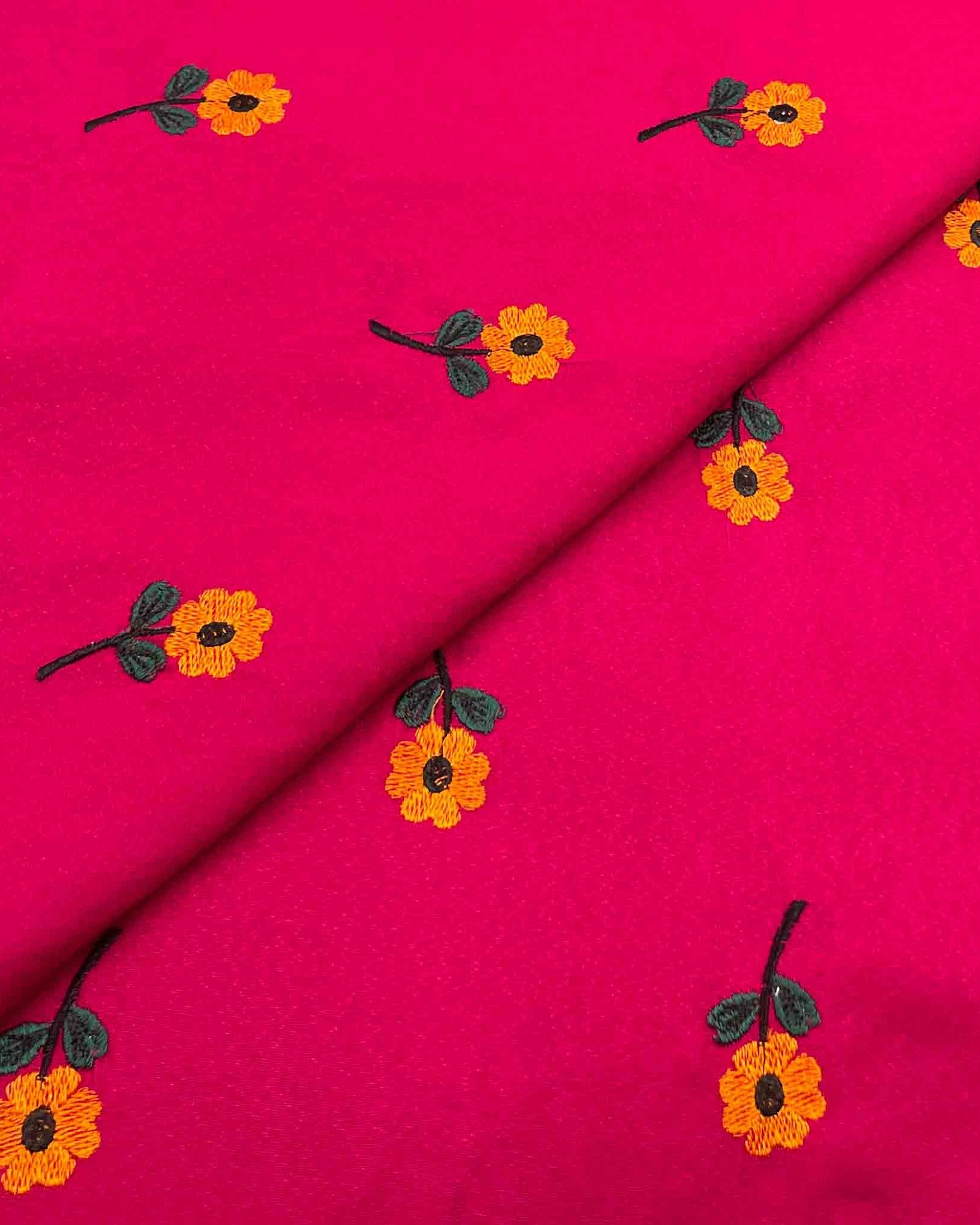 Elegant Silk Karandi fabric enriched with intricate embroidery. Soft, graceful, and versatile ideal for festive wear, luxury suits, and formal occasions.