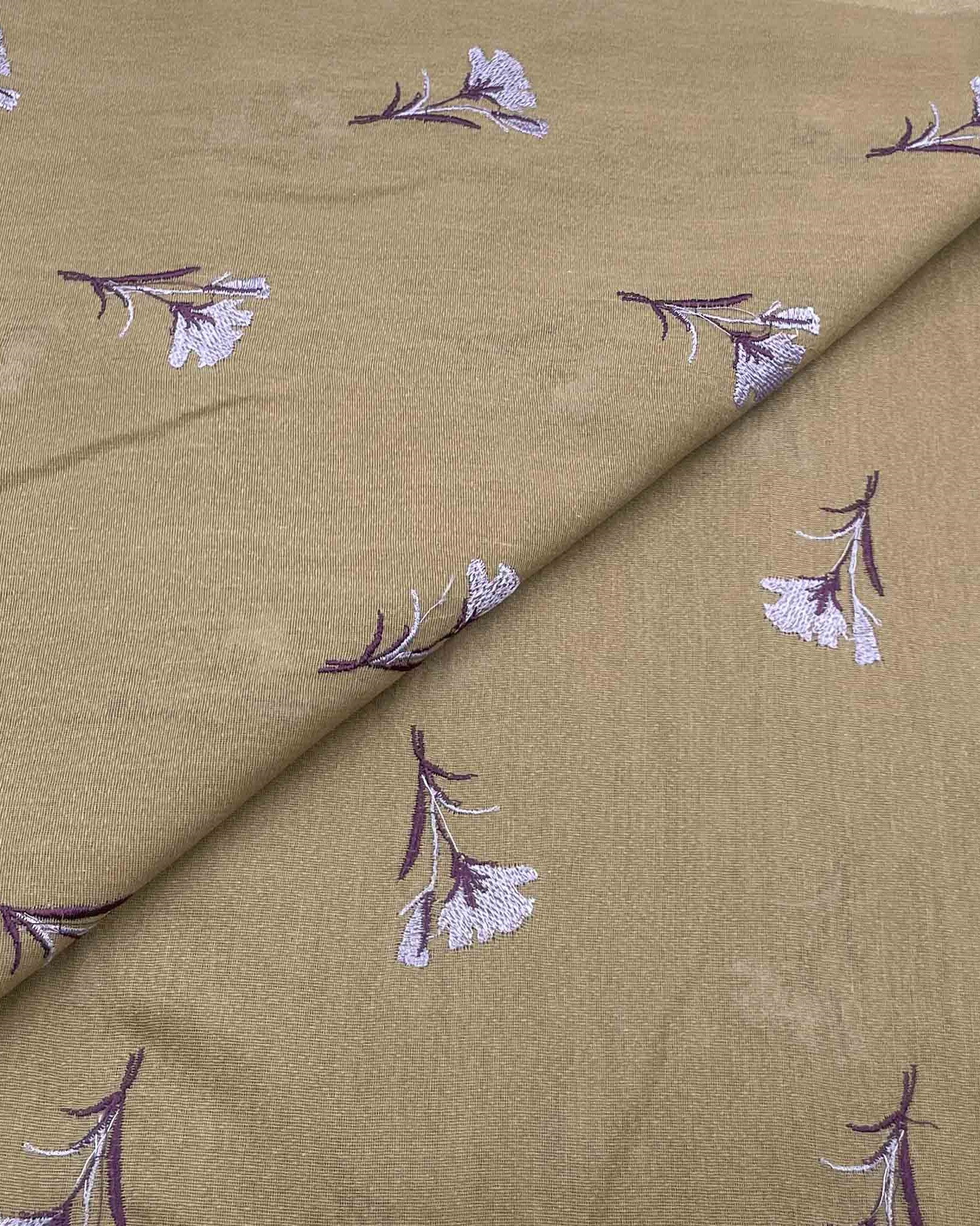 Elegant Silk Karandi fabric enriched with intricate embroidery. Soft, graceful, and versatile ideal for festive wear, luxury suits, and formal occasions.