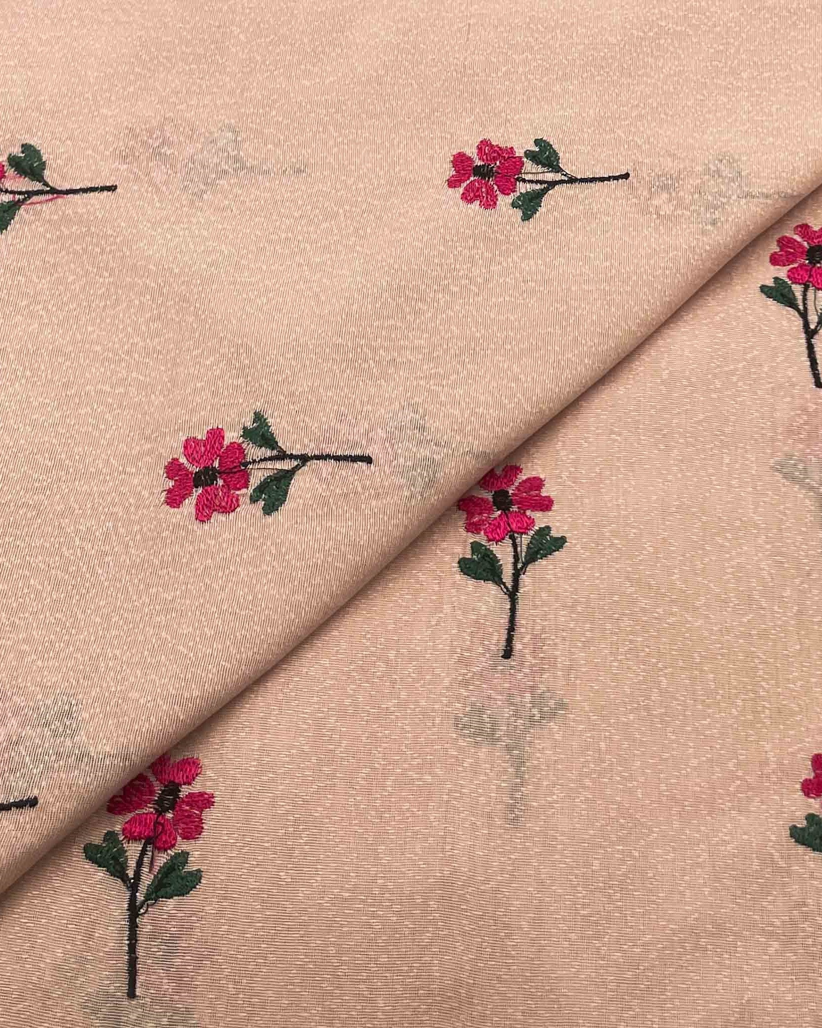 Elegant Silk Karandi fabric enriched with intricate embroidery. Soft, graceful, and versatile ideal for festive wear, luxury suits, and formal occasions.