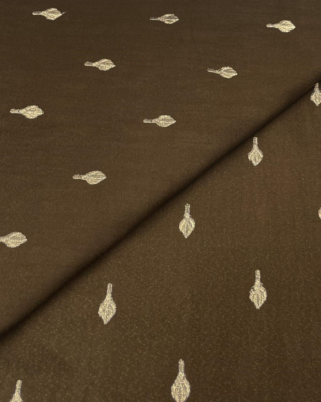 Elegant Silk Karandi fabric enriched with intricate embroidery. Soft, graceful, and versatile ideal for festive wear, luxury suits, and formal occasions.